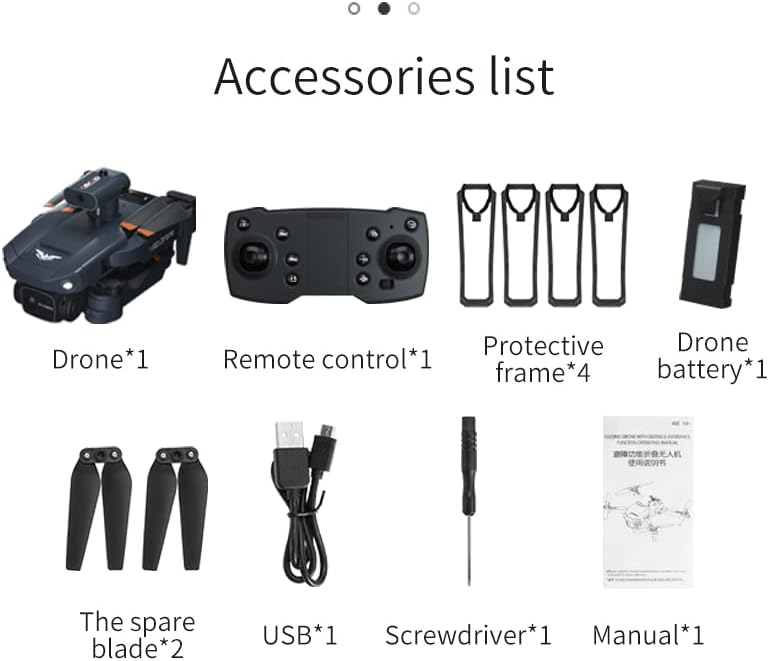 Included ComponentsRemote Control1, Battery1, Drone1, USB1, Manual1, Screwdriver1, The Spare Blade2, Protective Drone Frame4