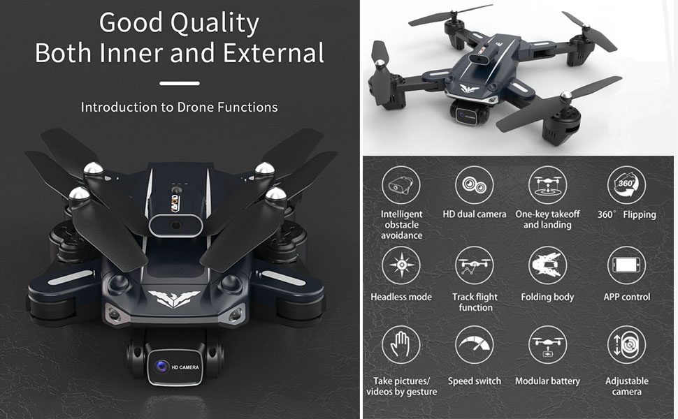 The AIROKA H109 Drone is a quadcopter with a 4K HD camera and a variety of clever functions that can be operated remotely. Three-sided obstacle avoidance, optical flow placement, aerobatic movements, and a folding form for simple carrying are among its distinguishing features. It appeals to both novices and seasoned drone fans, with features like as one-key takeoff and landing, headless mode, and smartphone control.