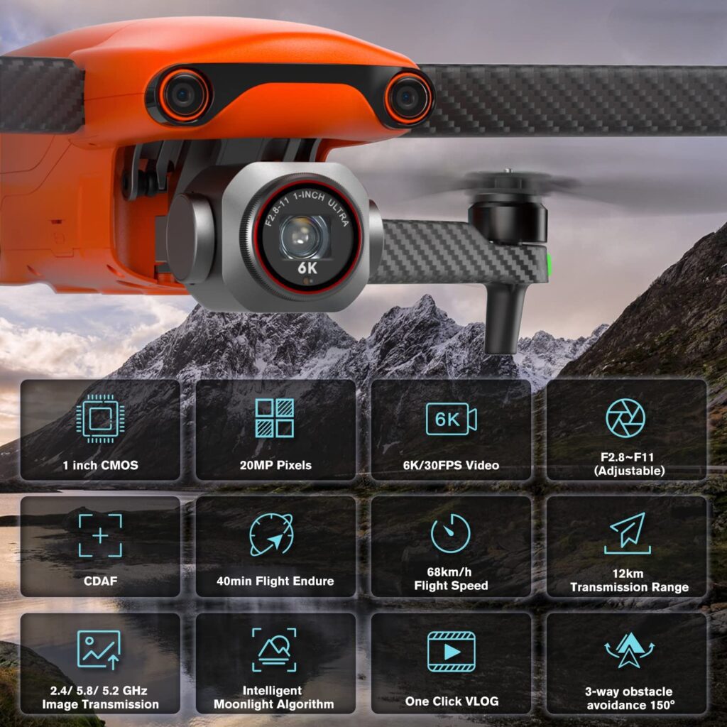 The Autel Robotics EVO Lite+ drone is a high-end model that lives up to its billing. It is jam-packed with features that set it apart in the competitive drone industry. The 1-inch CMOS sensor and 6K camera deliver beautiful, high-quality photos and video that will leave you speechless. The drone’s 3-way 360° obstacle avoidance technology ensures that you may fly in any situation securely and confidently.