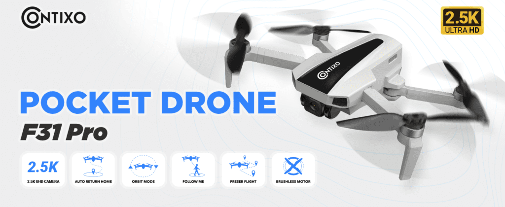 The Contixo F31 Pro Drone is a feature-rich, foldable quadcopter that offers an outstanding airborne experience. It’s excellent for both novices and expert drone fans, since it comes with a 2.5K Ultra High-Definition camera, GPS navigation, brushless motors, and a variety of clever flying modes. In this review, we’ll look at the design, features, flying performance, camera quality, and other aspects to help you determine whether the Contixo F31 Pro Drone is worth your money.