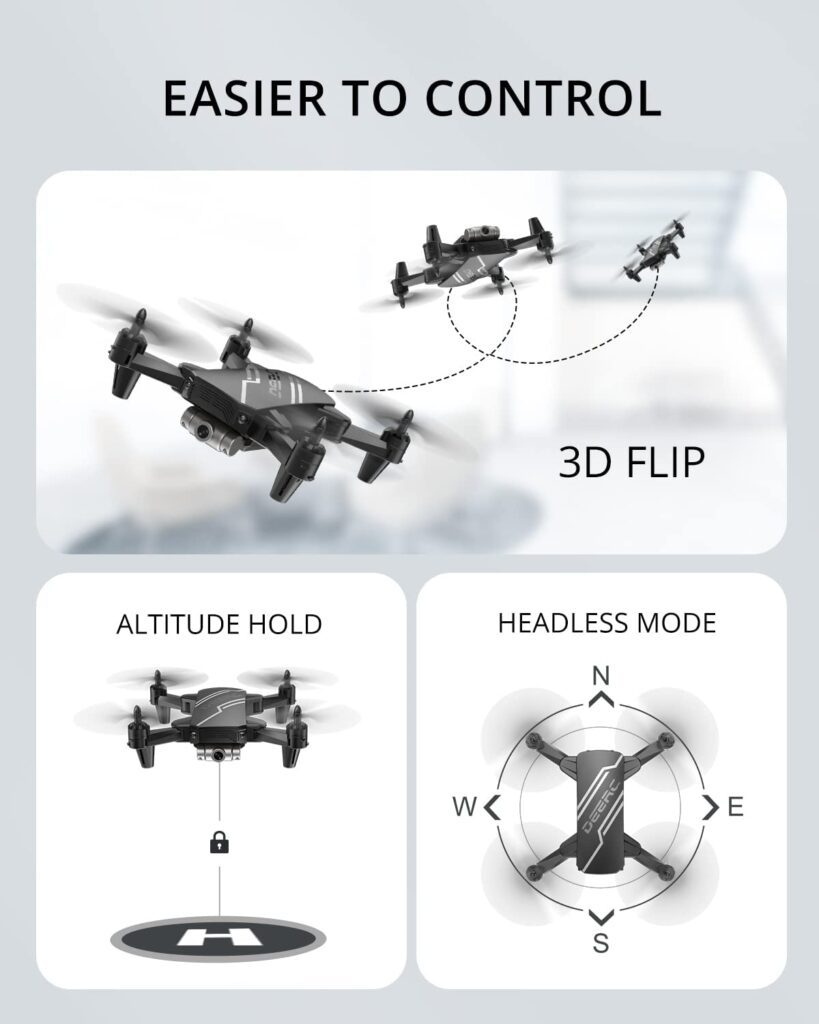 The DEERC D20 drone boasts numerous standout characteristics in addition to its remarkable flight performance and camera functions. Voice commands may be used to operate the drone, adding a new level of engagement and enjoyment to the flying experience. The drone also includes a headless mode, which allows beginners to control the drone without worrying about its direction.
