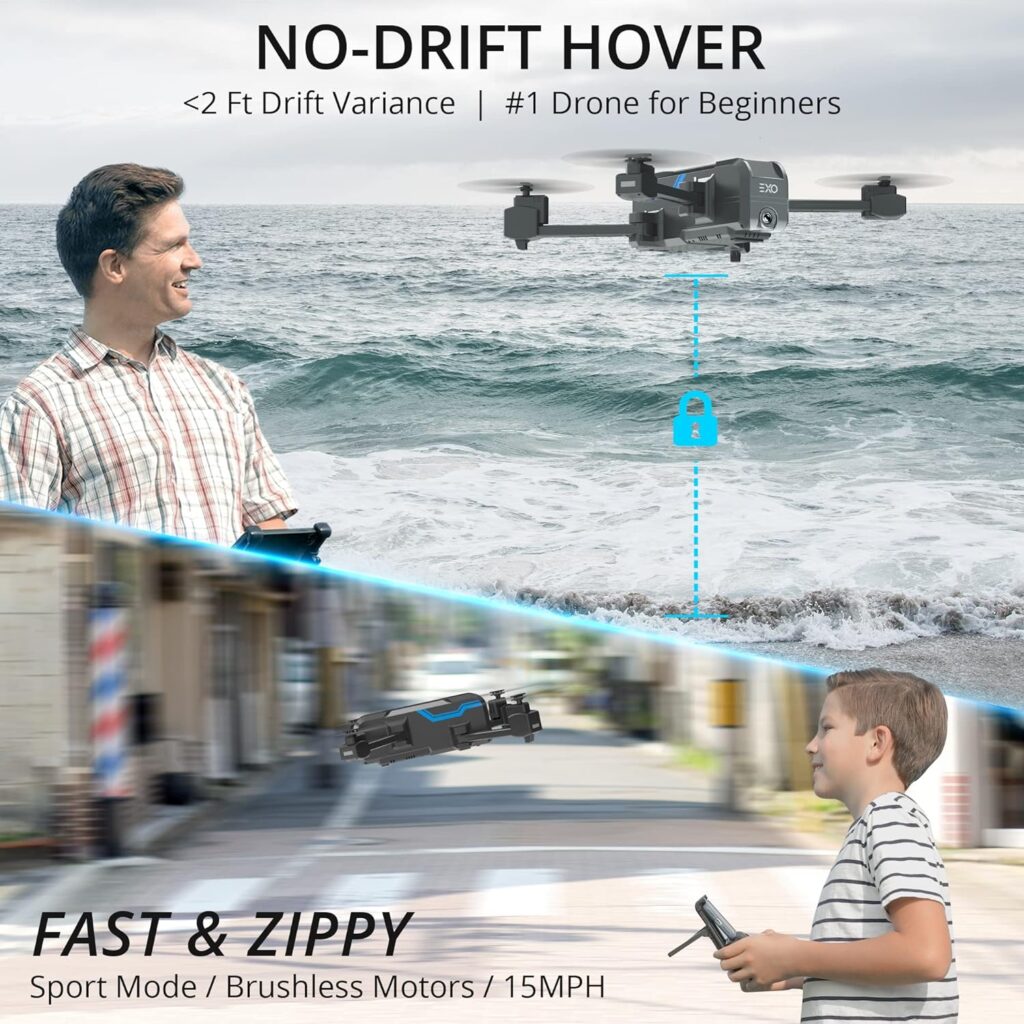 The EXO Scout Drone includes a variety of smart modes like as pin-fly, virtual reality, and follow-me to enhance your flying experience. It also has auto takeoff and landing capabilities, making it incredibly user-friendly, especially for novices.