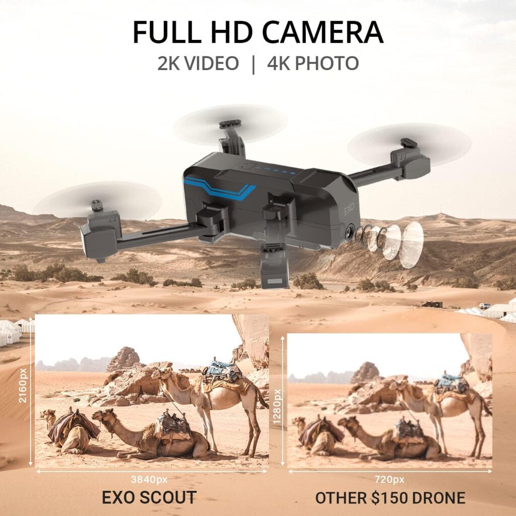 The EXO Scout Drone is an astounding piece of technology that is suitable for both novice and seasoned drone enthusiasts. The EXO Scout Drone provides a smooth and simple flight experience with to high-quality features such as a 1080p HD camera, folding construction, numerous smart modes, and more.