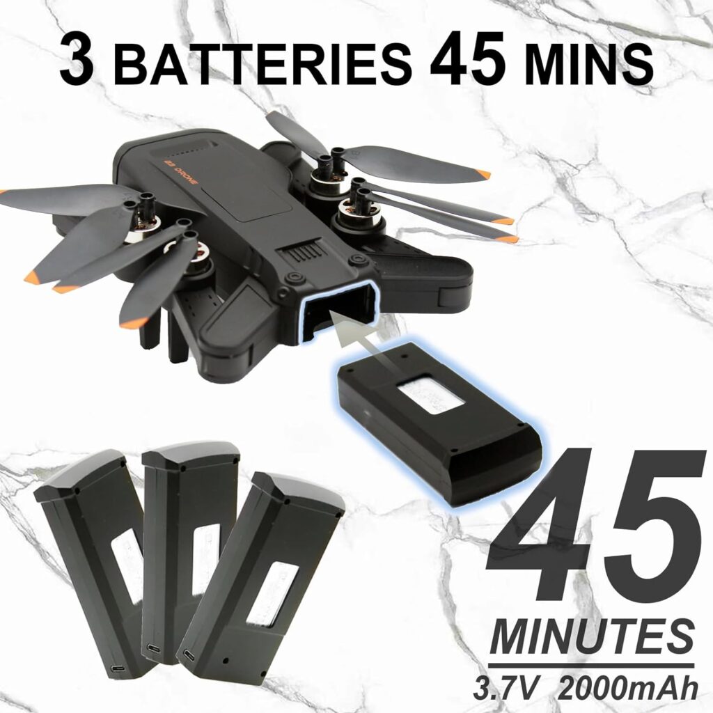 The FLYVISTA B3 Drone has great flight performance owing to its brushless motor and superior flight control capabilities. It has high wind resistance, allowing for stable flight even in challenging outdoor conditions. With three 2000mAh batteries included, the FLYVISTA B3 Drone has a total flying time of up to 45 minutes, giving users plenty of time to explore and shoot aerial footage.