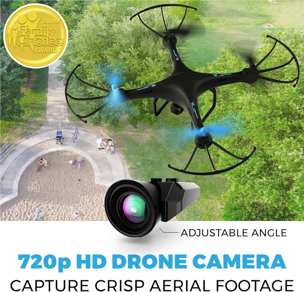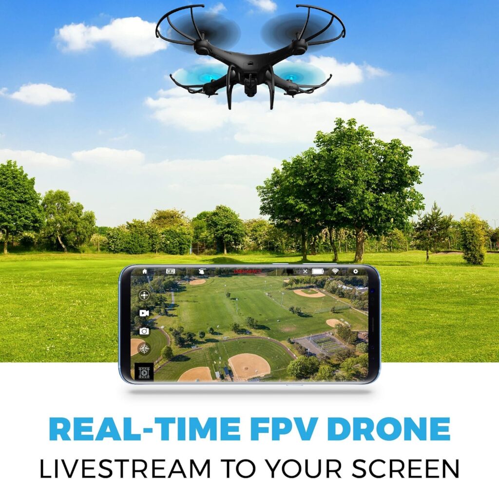 This Force1 U45WF Drone takes sharp photographs and clear films thanks to its 720p HD camera with a 120° wide-angle lens. The live streaming capability of the Force1 U45WF Drone lets users to see real-time footage on their smartphone displays, providing a bird’s-eye view throughout flights.