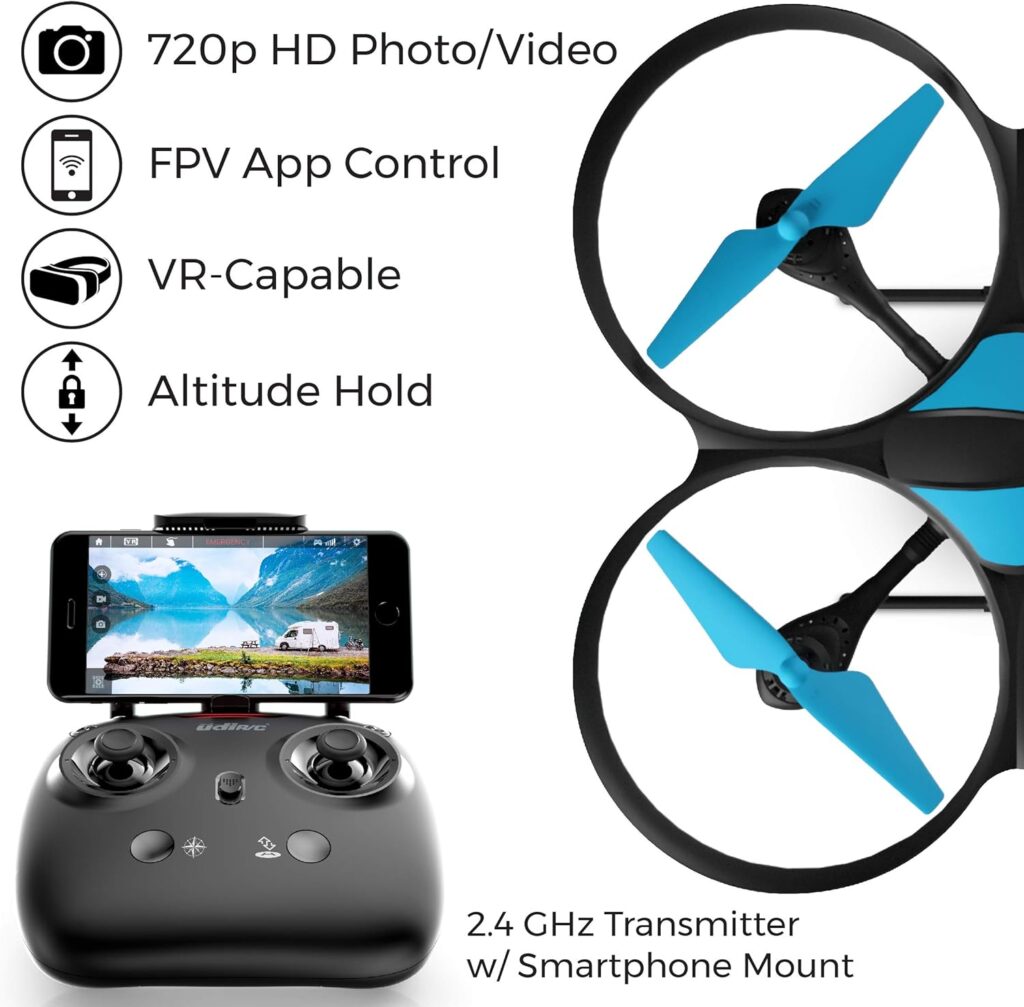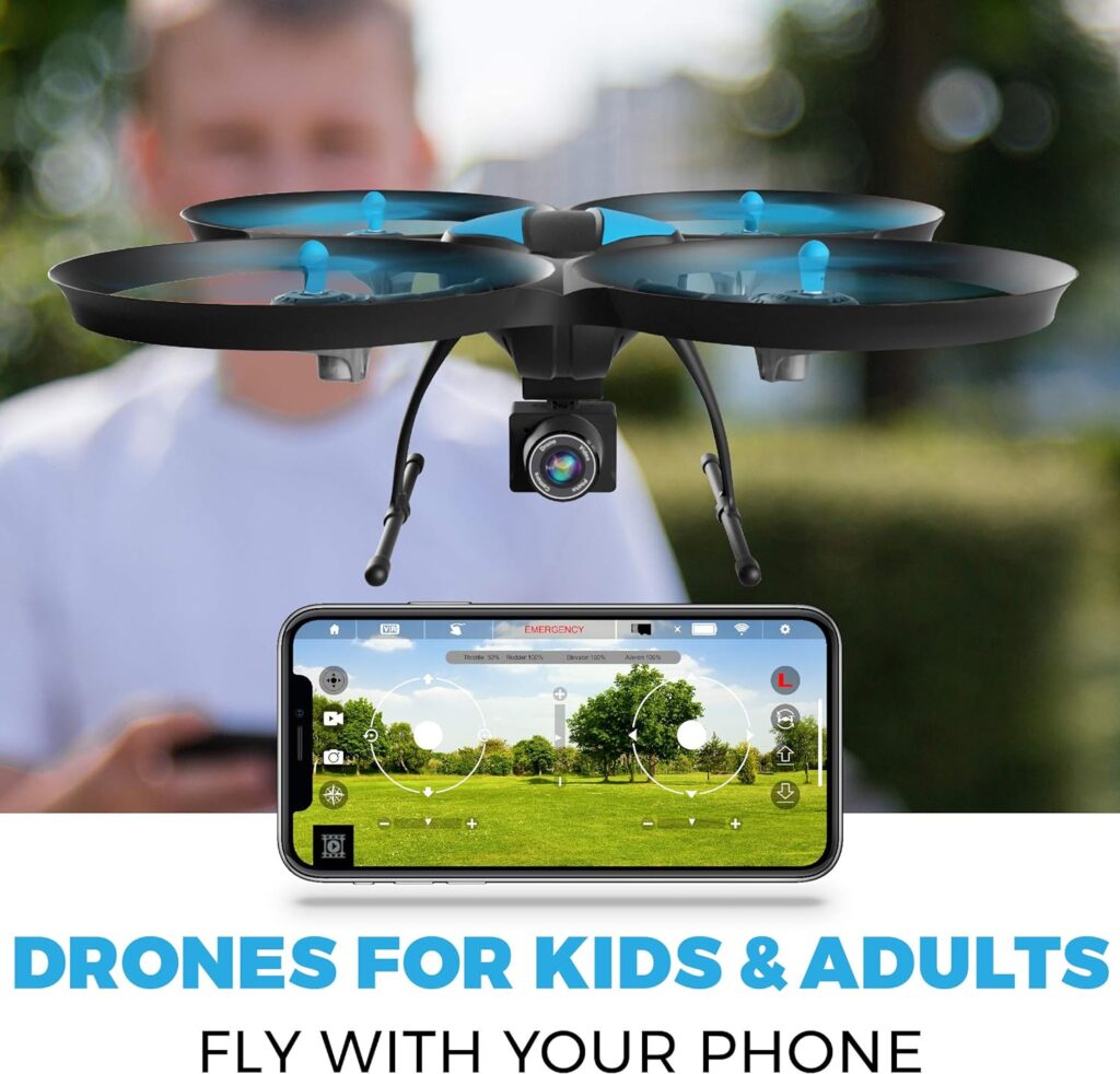 The Force1 U49WF Drone has reliable flights because to its 6-axis gyro and Altitude Hold function. It moves effortlessly, especially for novices, thanks to the Headless Mode, which simplifies orientation. The Force1 U49WF Drone’s enhanced range of 150 meters gives plenty of opportunity for exploration, and the two batteries allow for longer flight periods.