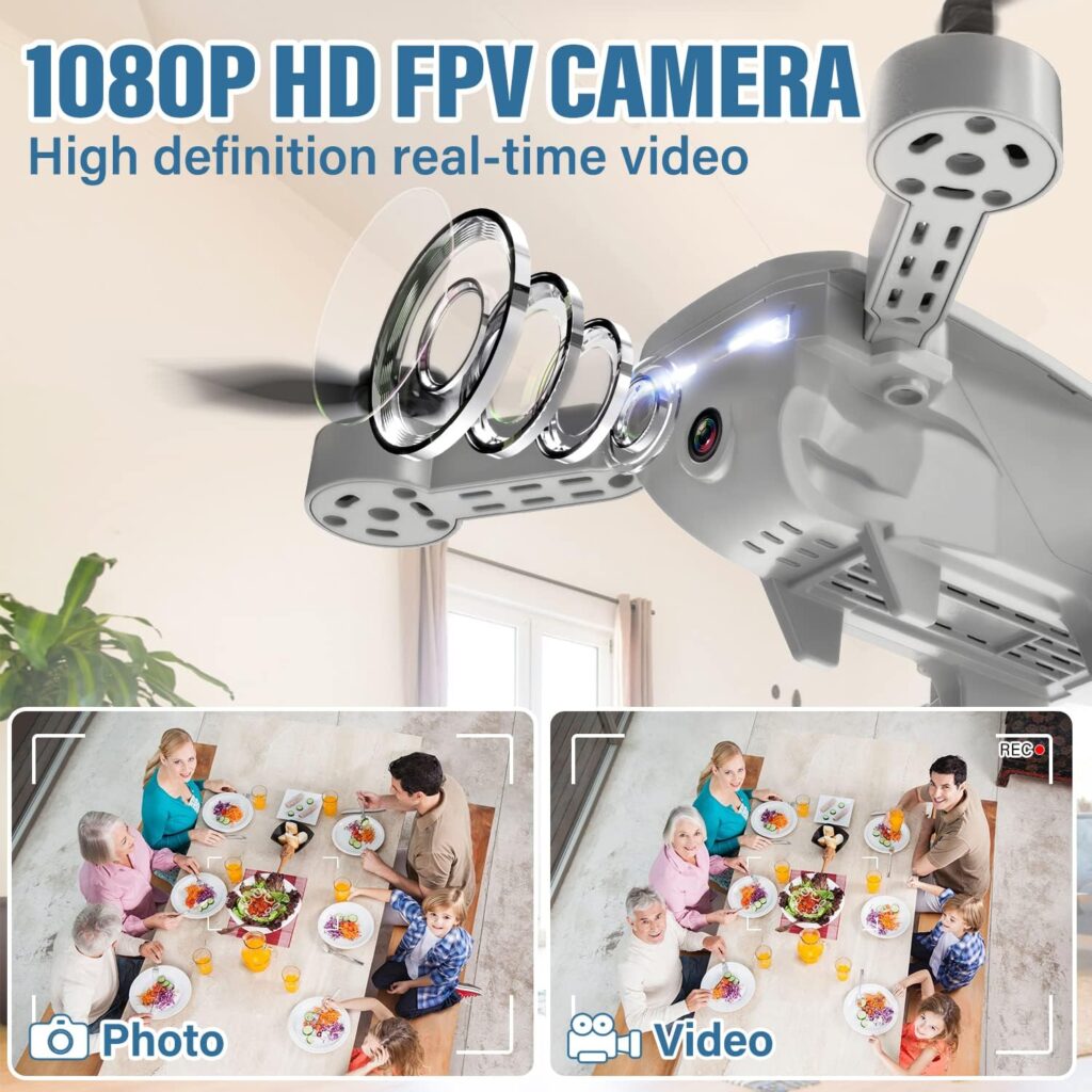 • 1080P HD camera captures high-quality photos and videos