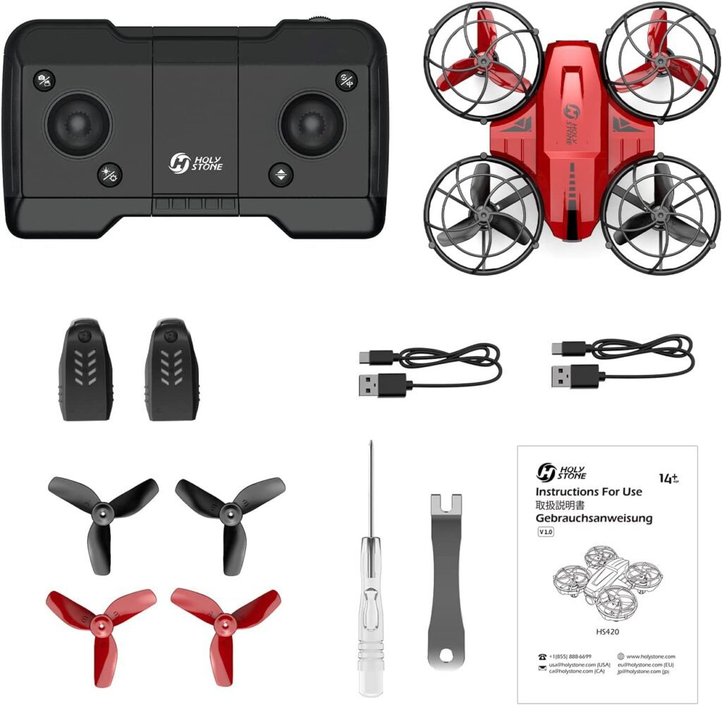 The Holy Stone HS420 Drone is a feature-rich quadcopter that provides an exciting and pleasurable flying experience. It provides excellent value for money because to its simple operation, amazing flight performance, HD FPV camera, and a variety of fascinating features. Whether you’re a novice or a seasoned pilot, this tiny drone will bring hours of entertainment and adventure.