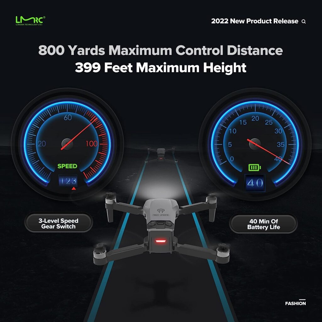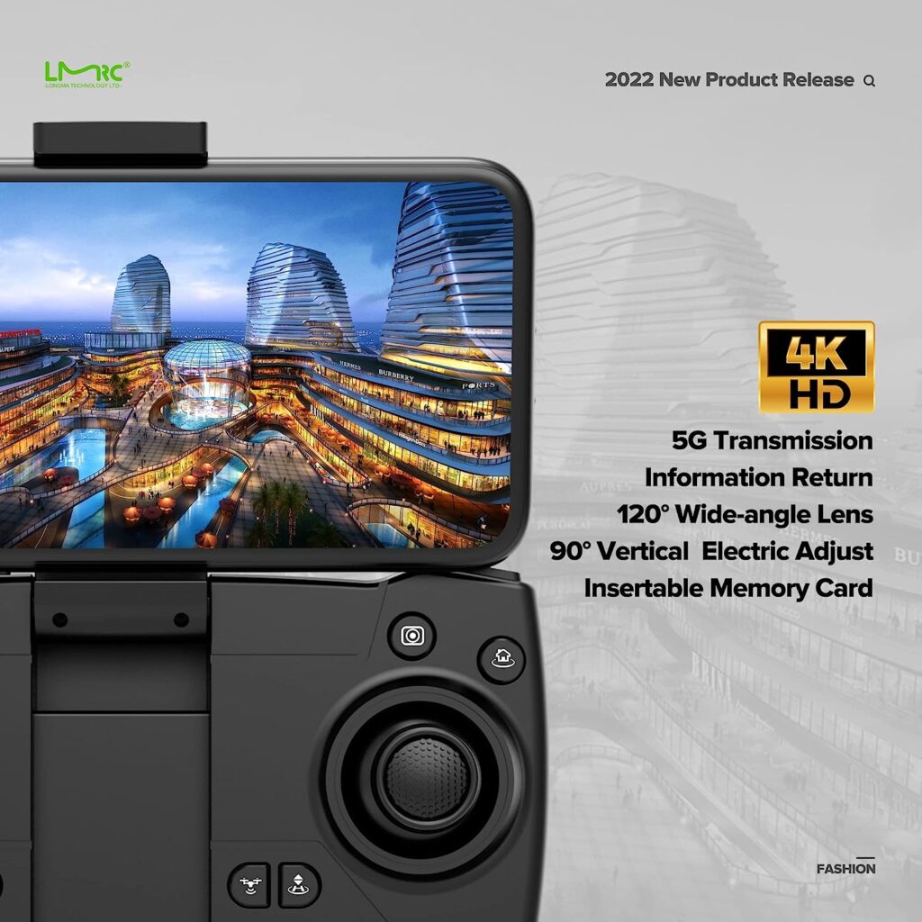 The LMRC LM-12 Drone’s 4K UHD camera, which produces amazing photographs and movies with remarkable resolution, is one of its distinguishing features. The improved 5G signal transmission guarantees a reliable and seamless real-time HD first-person view on the smartphone app. Furthermore, the drone has changeable picture quality options, allowing you to enhance your film based on your tastes. The MV recording capability and full-screen viewing mode improve the aerial photography experience even further.