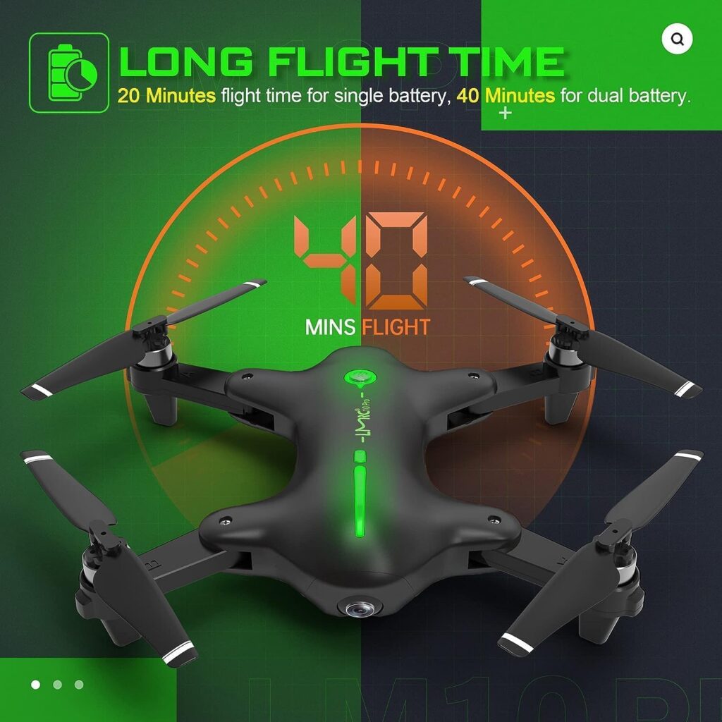 The LMRC LM10 drone has remarkable flight performance due to its brushless motors and GPS system. With a maximum speed of 43.2 km/h and five levels of wind resistance, the drone provides a quiet, powerful, and efficient flying experience. The LMRC LM10 Drone’s GPS Intelligent Return Function assures the drone’s safety by automatically commencing the return function in the event of signal loss or low power.