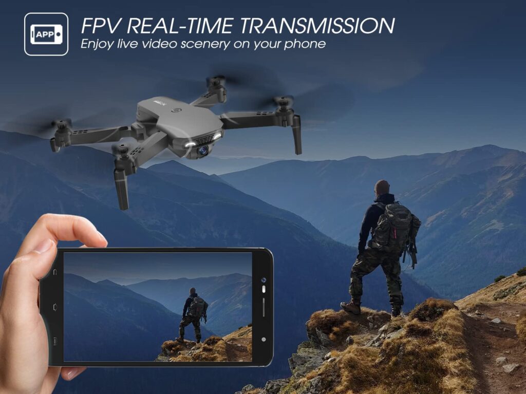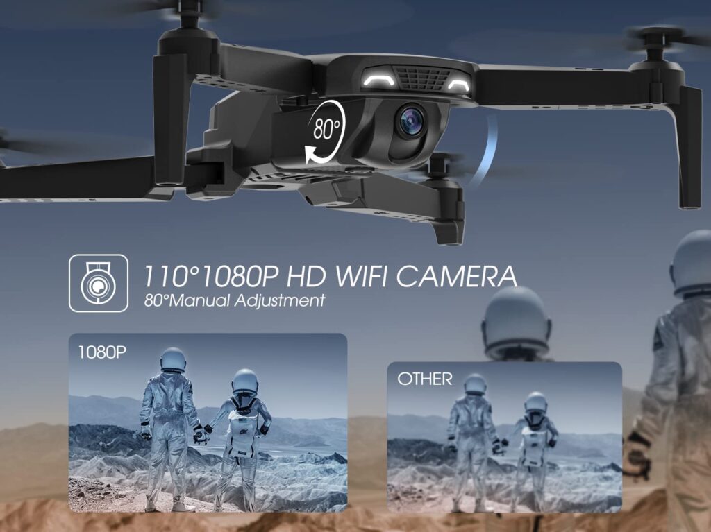 The NEHEME NH525 Drone is an adult-sized folding drone with a 1080P HD camera. It is intended for novices and has FPV real-time communication, altitude hold, headless mode, and one-key takeoff. It comes with two batteries for a 26-minute flight period and is appropriate for both indoor and outdoor flying.