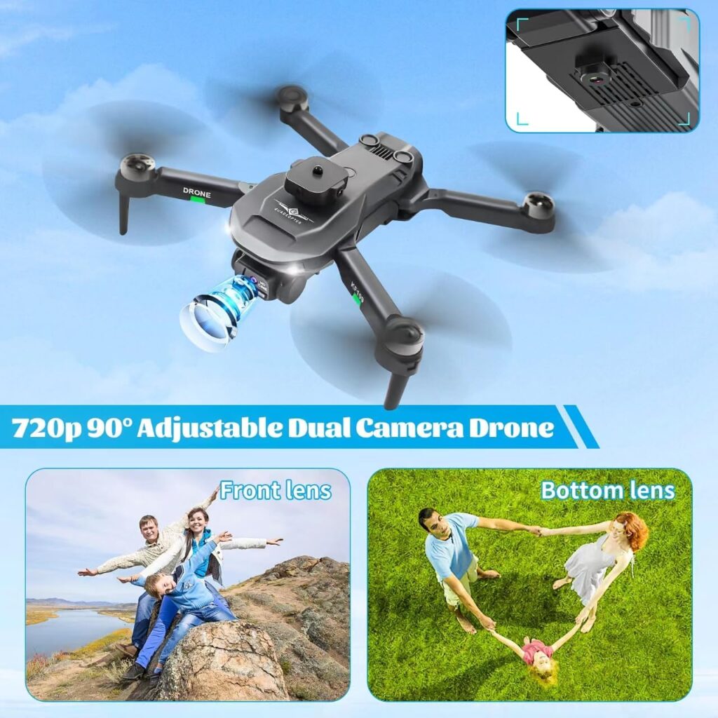 720P Dual CameraEquipped with a 720P 90° adjustable dual lens, this drone offers stunning real-time image transmission, perfect for both professional and personal aerial photography.