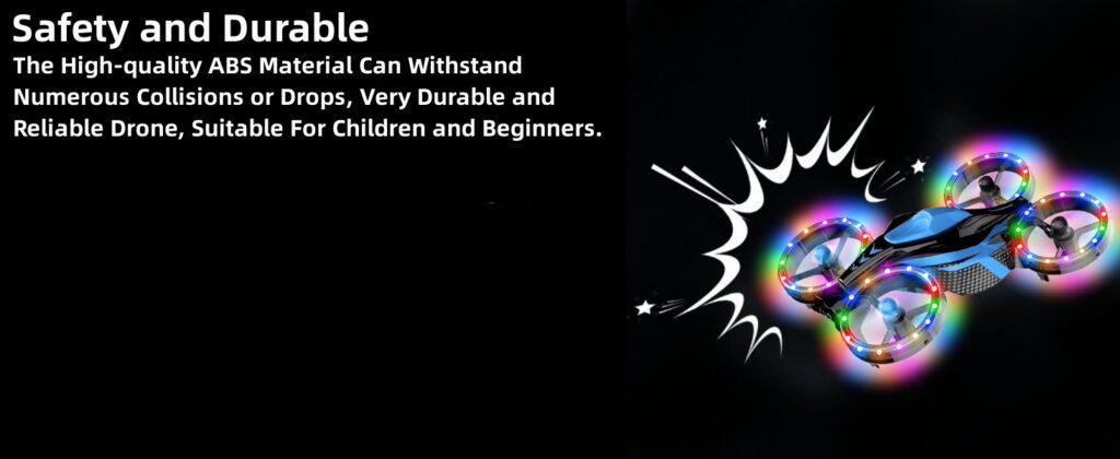 Propeller guards of the RAOED EC210 Drones are embellished with vivid, changeable LED lights in 11 distinct colors and settings. This element not only improves the visual appeal of the aircraft, but it also assures visibility during both day and night flights. The use of high-quality ABS material in the RAOED EC210 Drone’s design makes it sturdy and capable of withstanding crashes or drops, which adds to its safety for younger users.