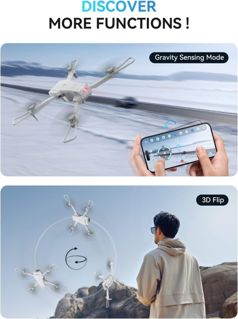 Special Feature– Lightweight Portable Drone with Camera for Adults – Suitable for Beginners – 360° Rolling – One Key Take-Off/Landing – Emergency Stop – Headless Mode – 7 * 24h service: support@rovprotech.com – Father’s Day Gift & Drone deal – Cheap 4K drone – 3 Speed Switch – 20min Flying Time – Intelligent Follow Me Mode – UAV Protection Rack – Obstacle Avoidance – 2.4GHz Real-Time Transmission – Stable Hovering – Dual 4K HD Camera