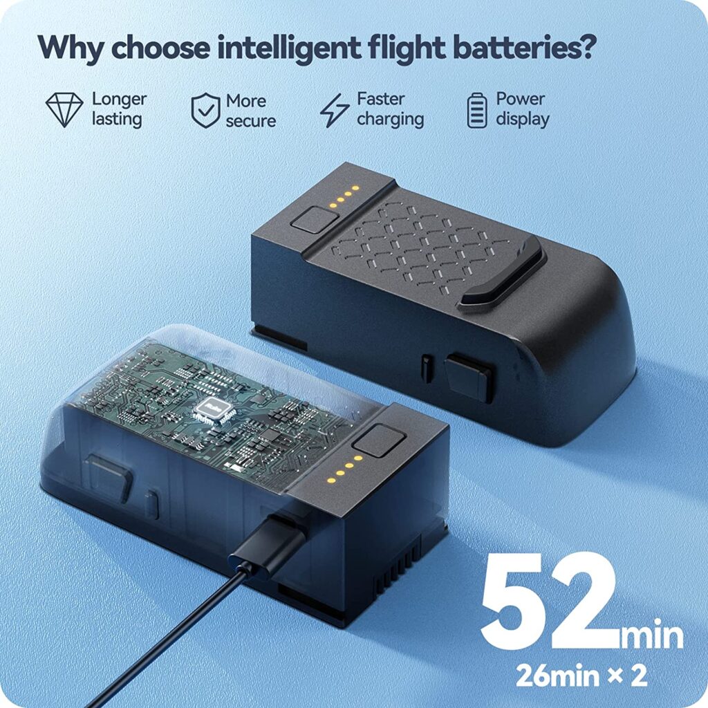 52 Mins Fly Fun TimeWith two additional batteries, enjoy extended flight time to explore and capture more.
