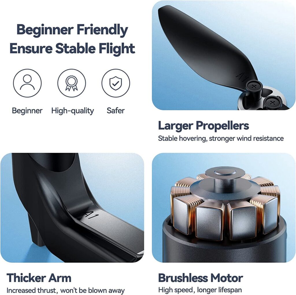 Return to Home: With one-key return, low battery return, and signal loss return capabilities, you can be certain that your drone will always find its way back to you.