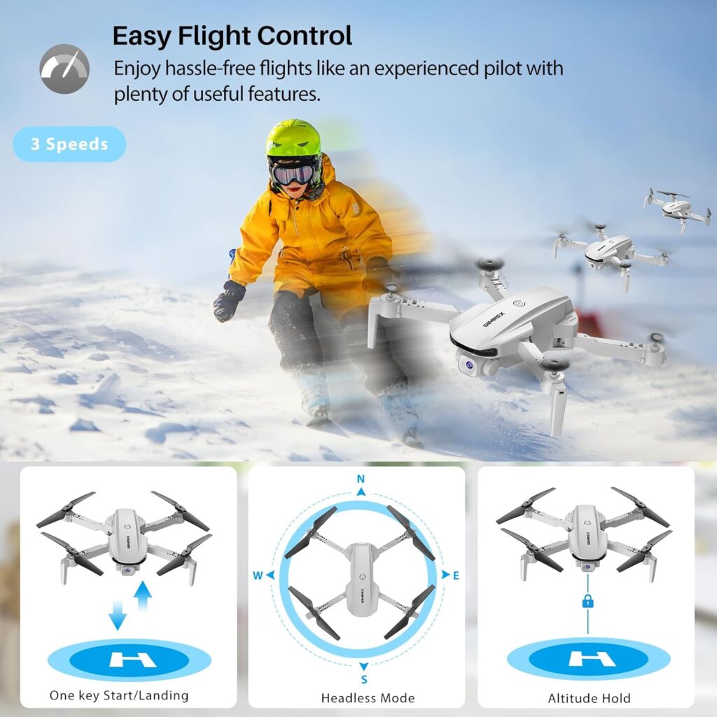 The SIMREX X800 Drone is a fascinating and user-friendly quadcopter with a slew of amazing features. Its lightweight and foldable form, as well as optical flow placement and an adjustable angle lens, make it an excellent choice for both indoor and outdoor flight. The 1080P camera produces high-quality photographs and movies, while the longer flying time and safety measures provide further piece of mind.