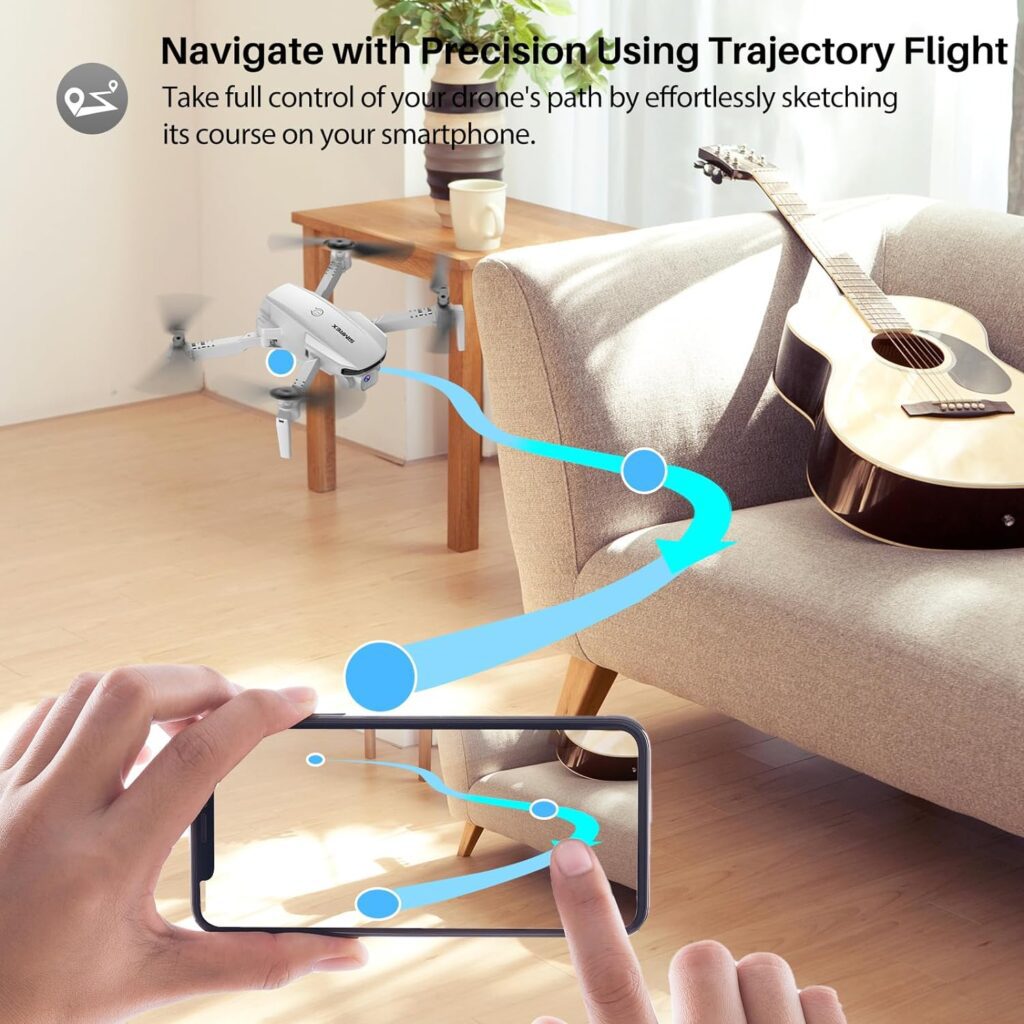 The SIMREX X800 Drone’s 1080P camera is one of its most notable features. This camera captures photos and videos in real time, with precise air pressure sensor alignment for clearer, higher-quality pictures. The FPV transmission of the SIMREX X800 Drone lets you to explore the environment from multiple perspectives and watch real-time video on the “SIMREX Zoomy” app.