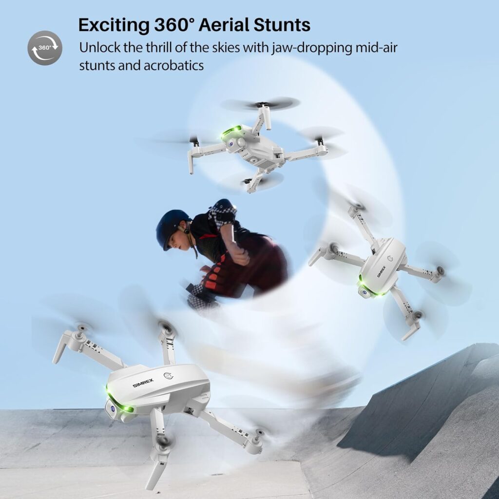 The SIMREX X800 Drone has extra functions that improve the entire flying experience. The RGB lights not only make night flying more pleasurable, but they also aid in the identification of the drone in the dark. The adjustable angle lens lets you to swap between different orientations, giving you a variety of viewing perspectives. The gravity sensing control of the SIMREX X800 Drone is ideal for novices, providing an easy and user-friendly experience.