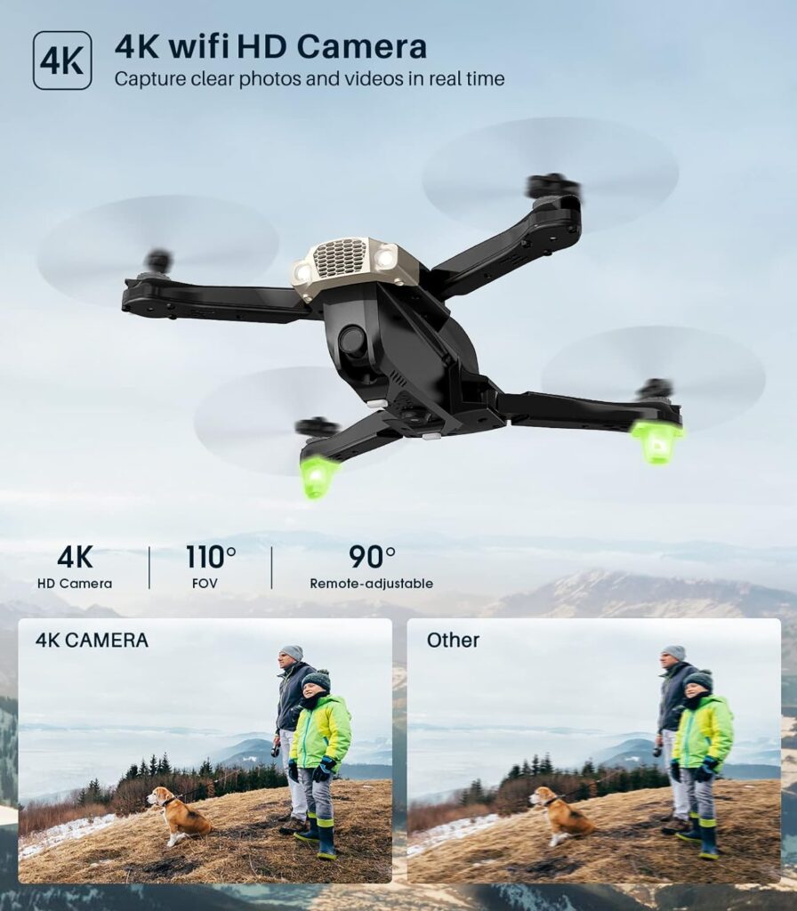 4K HD CameraCaptures stunning aerial footage and high-resolution images with FPV real-time Wi-Fi transmission.