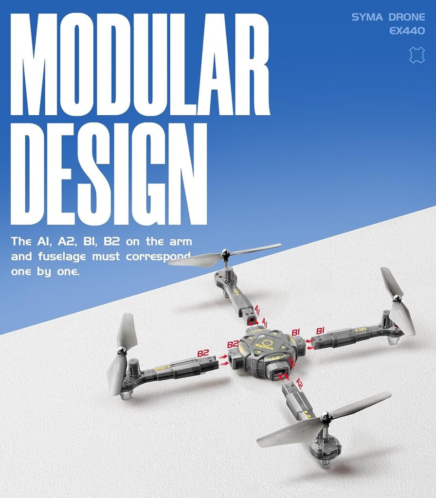 The SYMA X440 Drone has a lightweight and robust construction that makes it easy to handle and transport. The removable arms give an interactive aspect, allowing youngsters to construct the drone themselves, boosting hand dexterity and encouraging creativity. The strong propeller guards improve flying safety by reducing damage risk and assuring stability, making it suitable for both children and dogs.