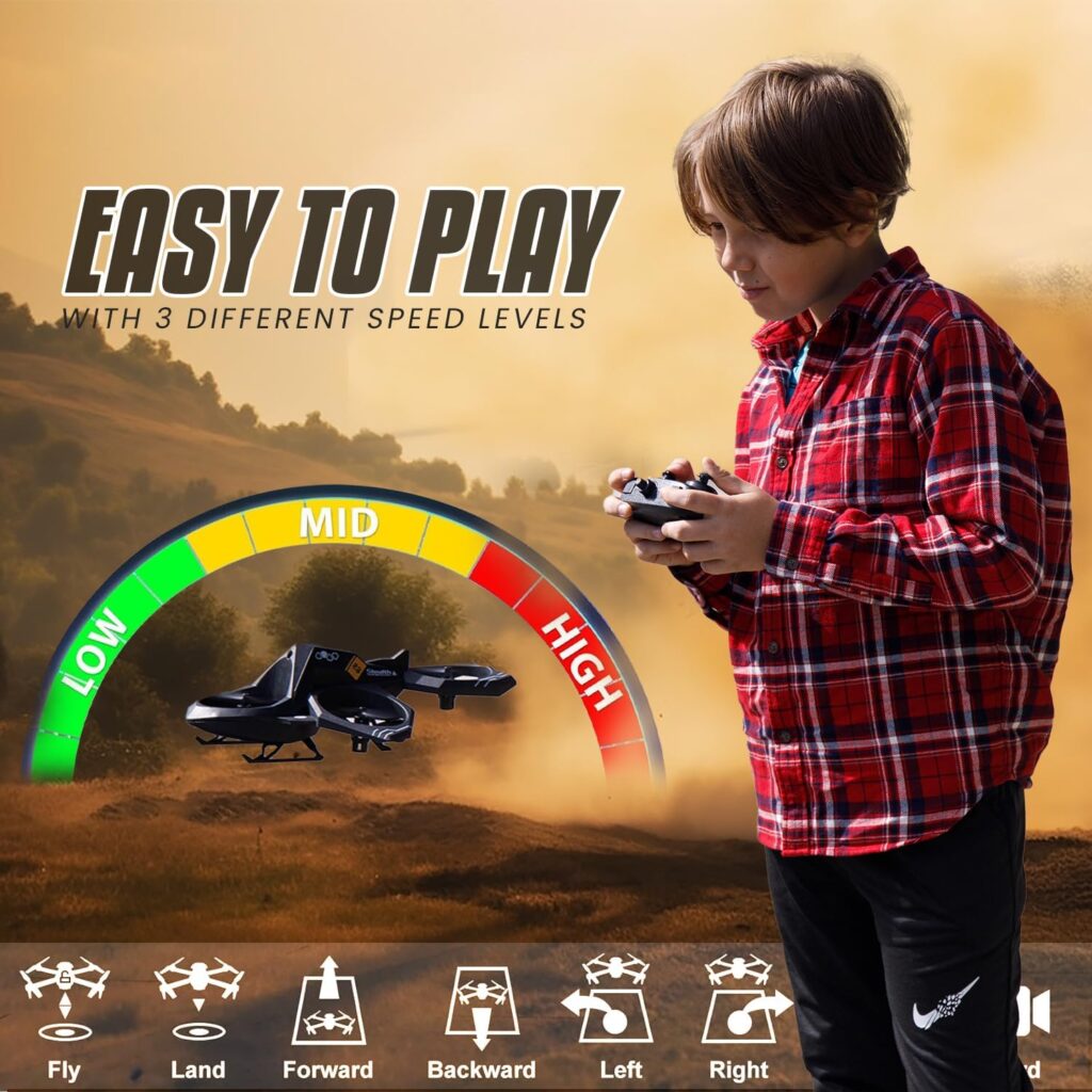 The Vitchelo Quadcopter Drone excels at flight performance, offering a steady and smooth flight experience. The built-in gyroscope keeps the drone balanced and stable, even in windy situations. The three speed options enable users to select the best pace for their skill level and desired experience. Beginners can begin with the slow mode for precise control, while more experienced users can progress to the medium or rapid settings for more thrilling flights. The drone’s crash resistance and robust build make it ideal for indoor and outdoor usage, giving hours of amusement and learning possibilities.