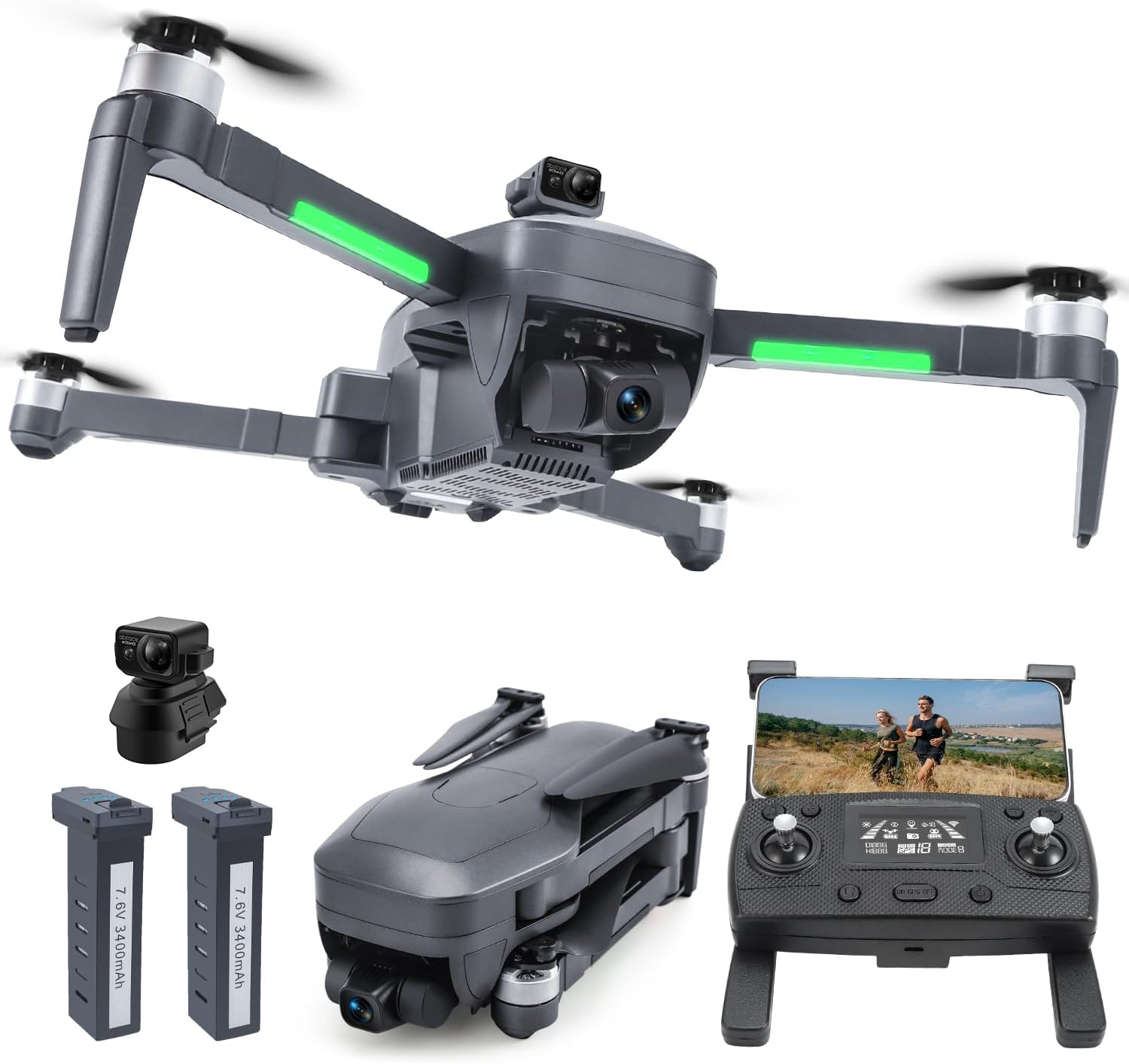 4K HD+Gimbal CameraCapture stunning 4K photos and videos with the 3-axis gimbal and EIS for smooth, stable footage.